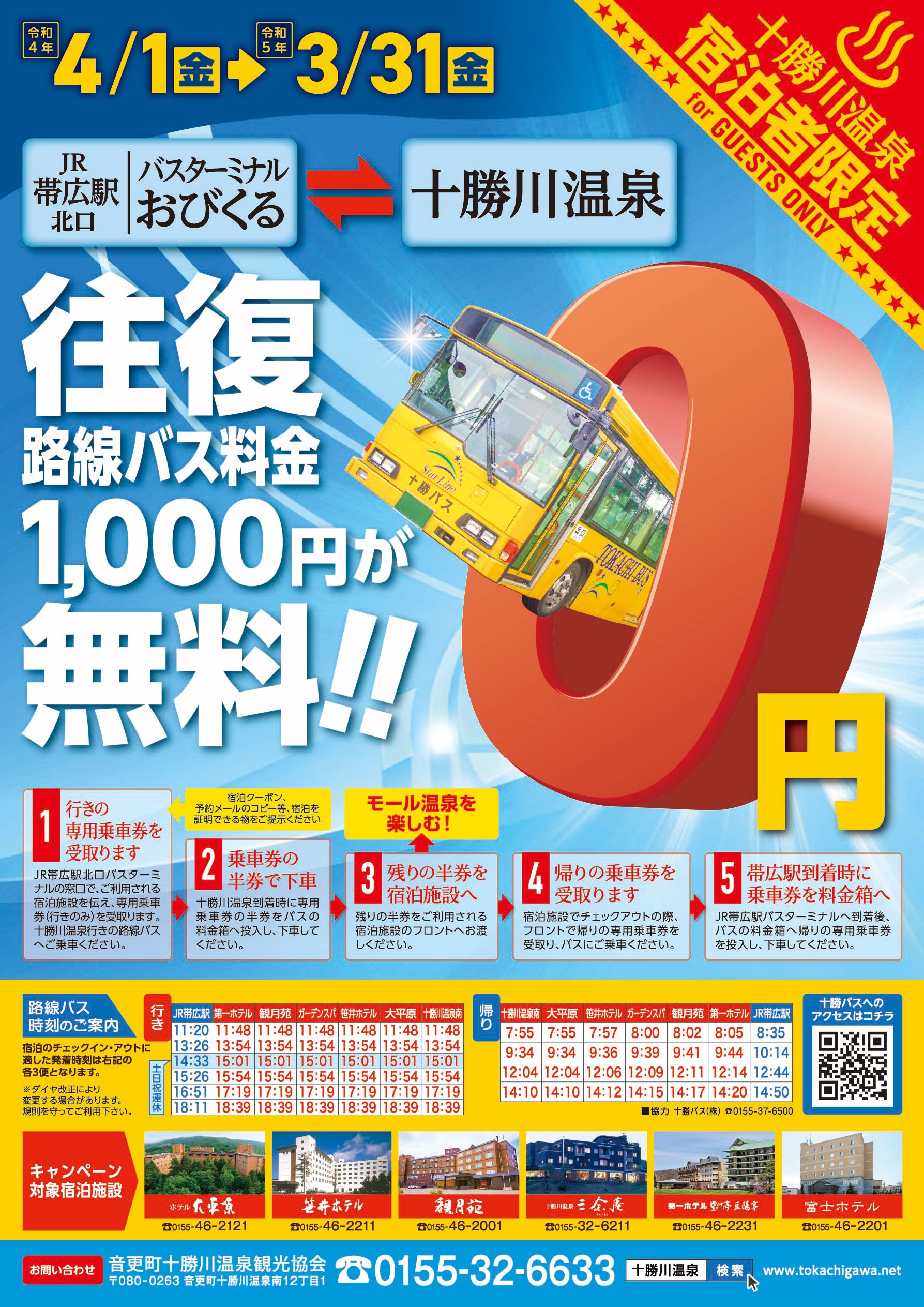 十勝川温泉の6ホテルに宿泊される方を対象に、帯広駅バスターミナルから出発する