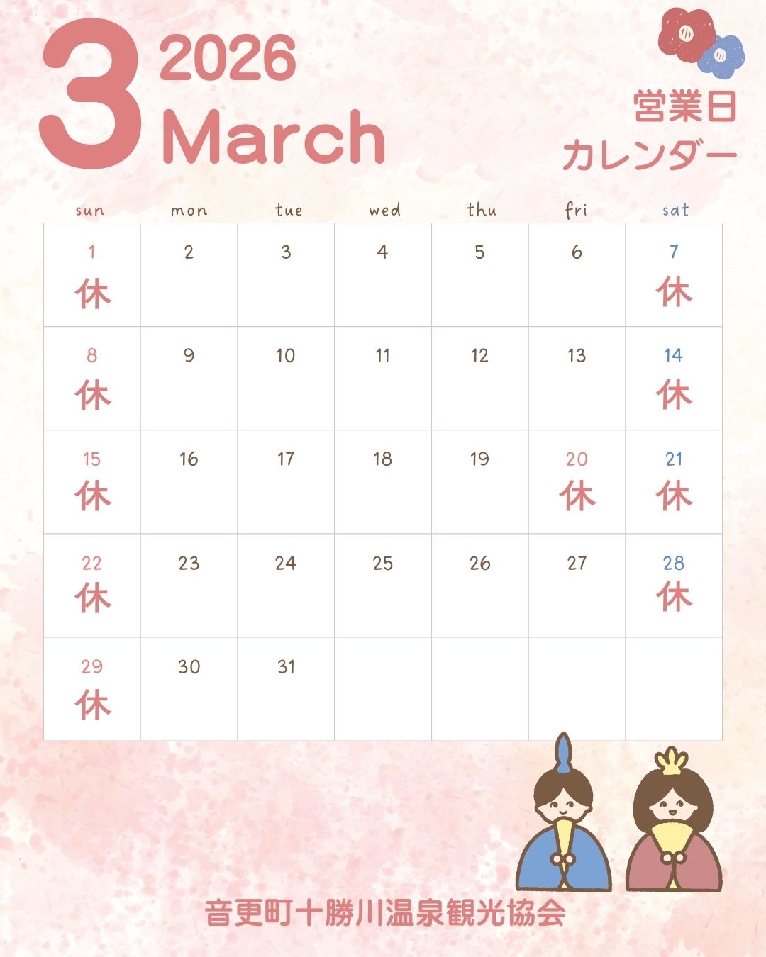 3月 休館日のお知らせ